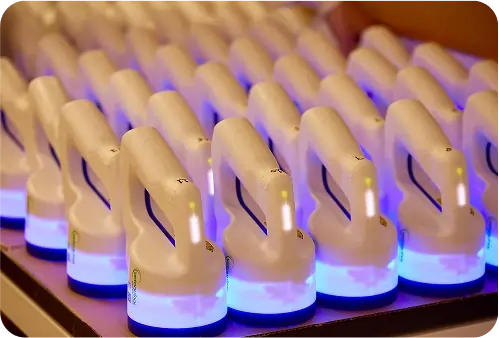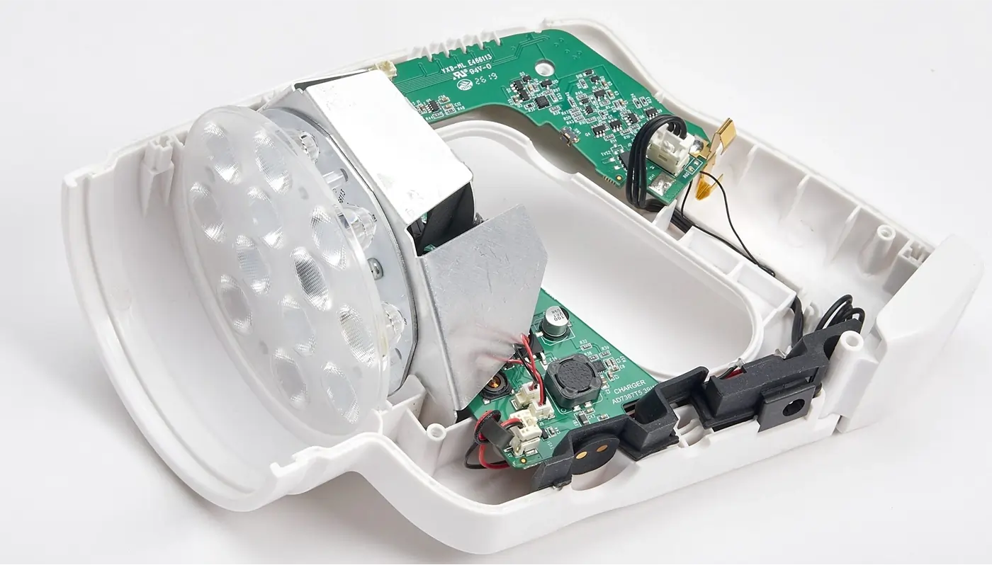 In parallel, we set about greatly reducing the size and weight of the system by placing the lights within the confines of a hand-held flashlight body. That involved dealing with power output, battery performance, internal heat management and more - all while meeting photo-biological safety test standards.