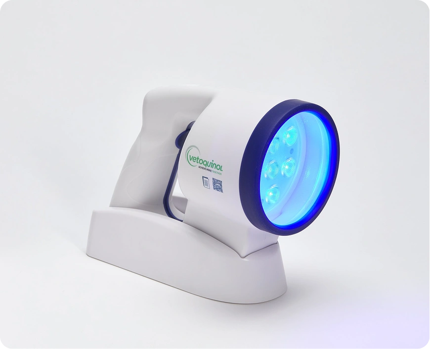 Klox Technologies found that when they smeared their specially developed gel over an open wound and applied the Vetoquinol light, it triggered rapid healing and far less scarring. The marketing director of Klox, said "It's a brilliant advance, giving us the freedom to bring skin healing technology into every room."